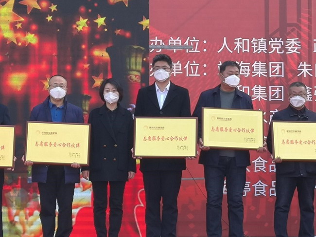 当日,荣成稀土喜获“志愿服务爱心合作伙伴”荣誉称号,副总经理闫文龙代表公司上台领奖,并表示荣成稀土将乘此东风,扎实开展2023年各项活动,为建设“政通人和,美德人和”贡献智慧和力量。