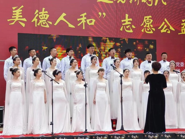 “学习雷锋好榜样,忠于革命忠于党……”高亢的歌声拉开了“政通人和,美德人和”志愿公益典礼的帷幕。为弘扬雷锋精神,传承志愿服务美德,荣成市人和镇党委借助“三八”国际劳动妇女节这一契机,于3月8日上午在靖海集团康馨社区广场举行典礼,向在场的妇女同志表达了节日祝愿的同时也为多家企业、志愿者颁发了荣誉奖项。现场参加典礼的有来自人和镇各社区的志愿者,来自企业、农村各工作片的21支合唱队等近2000人。