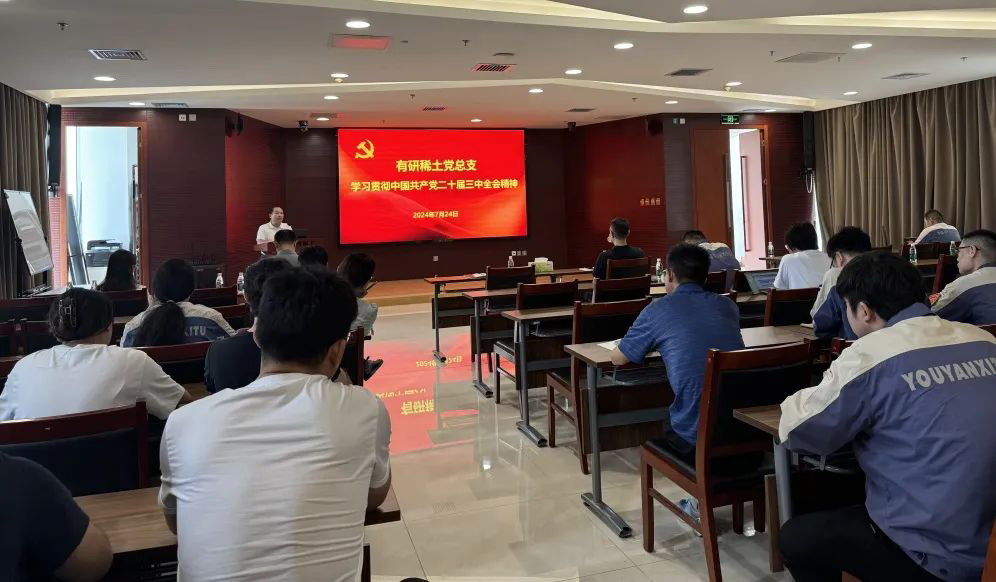 2024年7月24日,有研稀土党总支召开全体党员大会,传达学习中国共产党二十届三中全会精神。党总支委员、经营班子成员出席会议,所属各党支部(含乐山稀土、荣成稀土)党员100余人通过线下、线上相结合的方式参加会议。党总支副书记、副总经理许国栋主持会议。