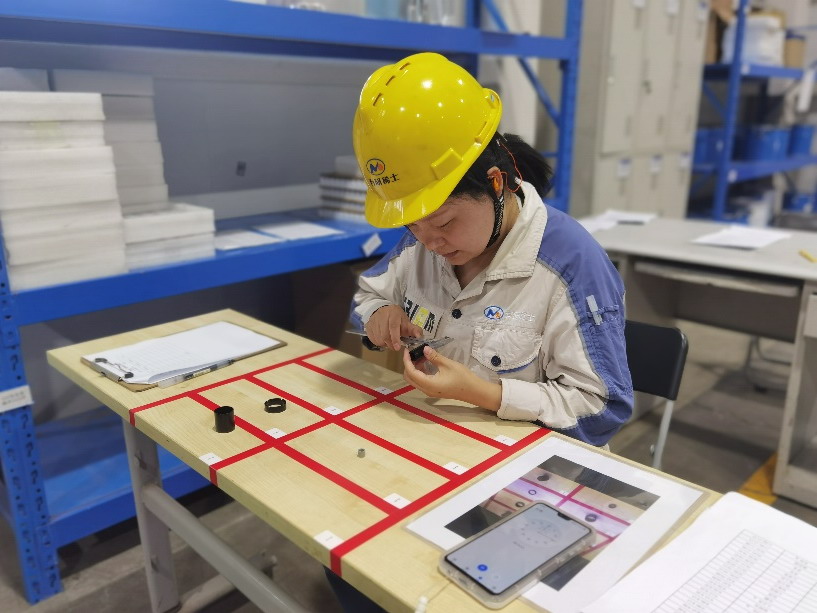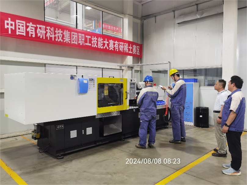 实操比赛包含注塑机设备实操和产品检验两部分,所有参赛选手在实操比赛前均通过了理论考试选拔。参赛选手穿戴整齐,严格按照安全技术操作规程进行操作,整体操作技术娴熟,注重安全,充分展示了他们良好的业务技能和高素质的职业风采。实操比赛聘请中国有研技能大师工作室、有研稀土生产管理办公室及磁材事业部有关负责人担任评委。