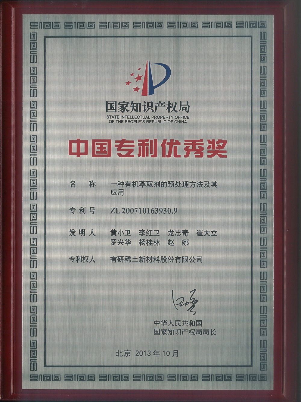 Innovation is the source of sustainable development of enterprises. Grirem Advanced Materials Co., Ltd. attaches importance to the protection and application of intellectual property rights in the process of constant innovation. By the end of October, 2017, we have applied for 502 patents at home and abroad in rare earth metallurgy, separation and purification, rare earth metals and alloys, and rare earth functional materials, including 87 foreign invent patents, 48 Chinese invent patents and 3 Taiwan invent patents. Of these, 249 patents have been authorized, including 41 foreign invent patents.