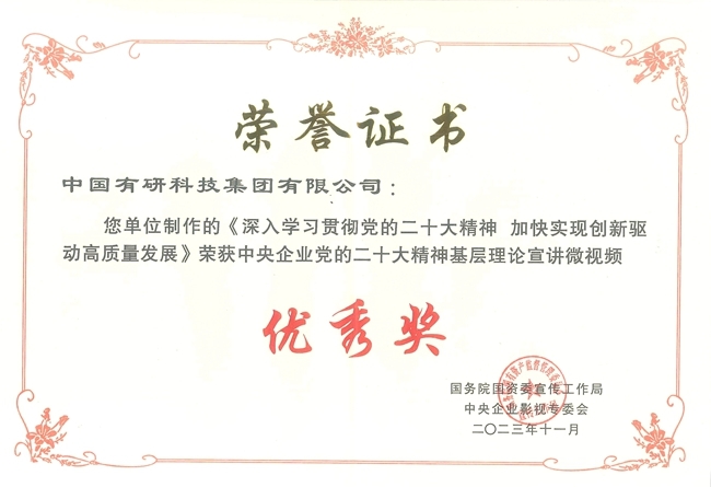 11月7日,国务院国资委举办了“2023年中央企业社会主义核心价值观主题微电影(微视频)展映发布仪式”,活动现场发布了大国重器、敬业奉献、社会责任、初心使命等四个主题100部优秀作品,同时还发布了中央企业党的二十大精神基层理论宣讲100部优秀微视频。中国有研选送的视频作品《成长——砥砺奋进70载 中国有研再出发》和《深入学习贯彻党的二十大精神 加快实现创新驱动高质量发展》分别入选第四届中央企业社会主义核心价值观主题微电影(微视频)和中央企业党的二十大精神基层理论宣讲微视频优秀作品。