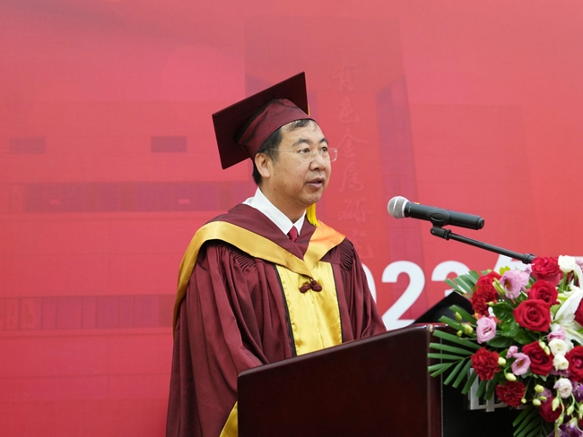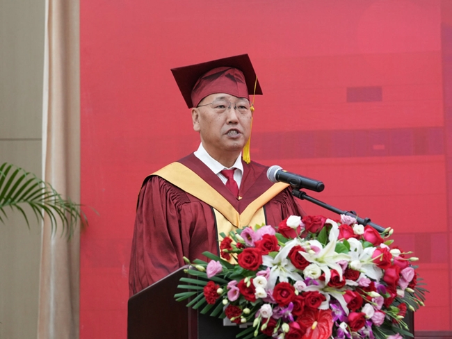 博士生导师张永安作为导师代表向圆满完成学业、迈向人生新阶段的毕业生们深切寄语。他希望,毕业生们要志存高远,勇立创新潮头;要勇毅笃行,敢于拥抱变化;要勇于担当,彰显家国情怀。