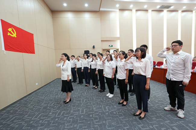 大会在庄严的国歌声中拉开序幕,新发展党员面向党旗郑重宣誓,许下为共产主义事业奋斗终身的坚定承诺。