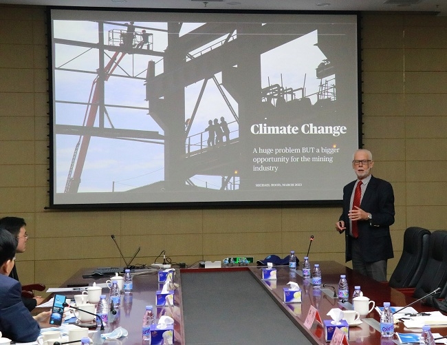 Michael Hood院士参观了中国有研展厅,并作了题为“Climate Change-A huge problem but a bigger opportunity for the mining industry”的报告,系统阐述了世界碳排放现状、影响碳排放量因素、未来矿业与新能源发展趋势和减碳途径。Michael Hood院士对中国有研的创新成果表示肯定,希望加强合作交流,并邀请有关专家参加第26届世界采矿大会。