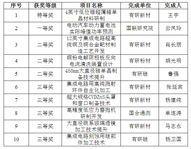喜报!有研集团一批职工创新成果荣获全国机械冶金建材行业职工技术创新成果奖