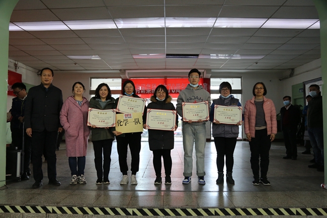 王臣和各单位工会主席为获奖队伍颁发证书,并与大家合影留念。王臣做总结讲话,他代表集团党委对全集团女职工为集团创新驱动高质量发展作出的贡献表示感谢,向获奖队伍表示祝贺,同时在“三八”节来临之际,向女职工们致以节日问候,祝大家家庭幸福、工作顺利、永远健康美丽。