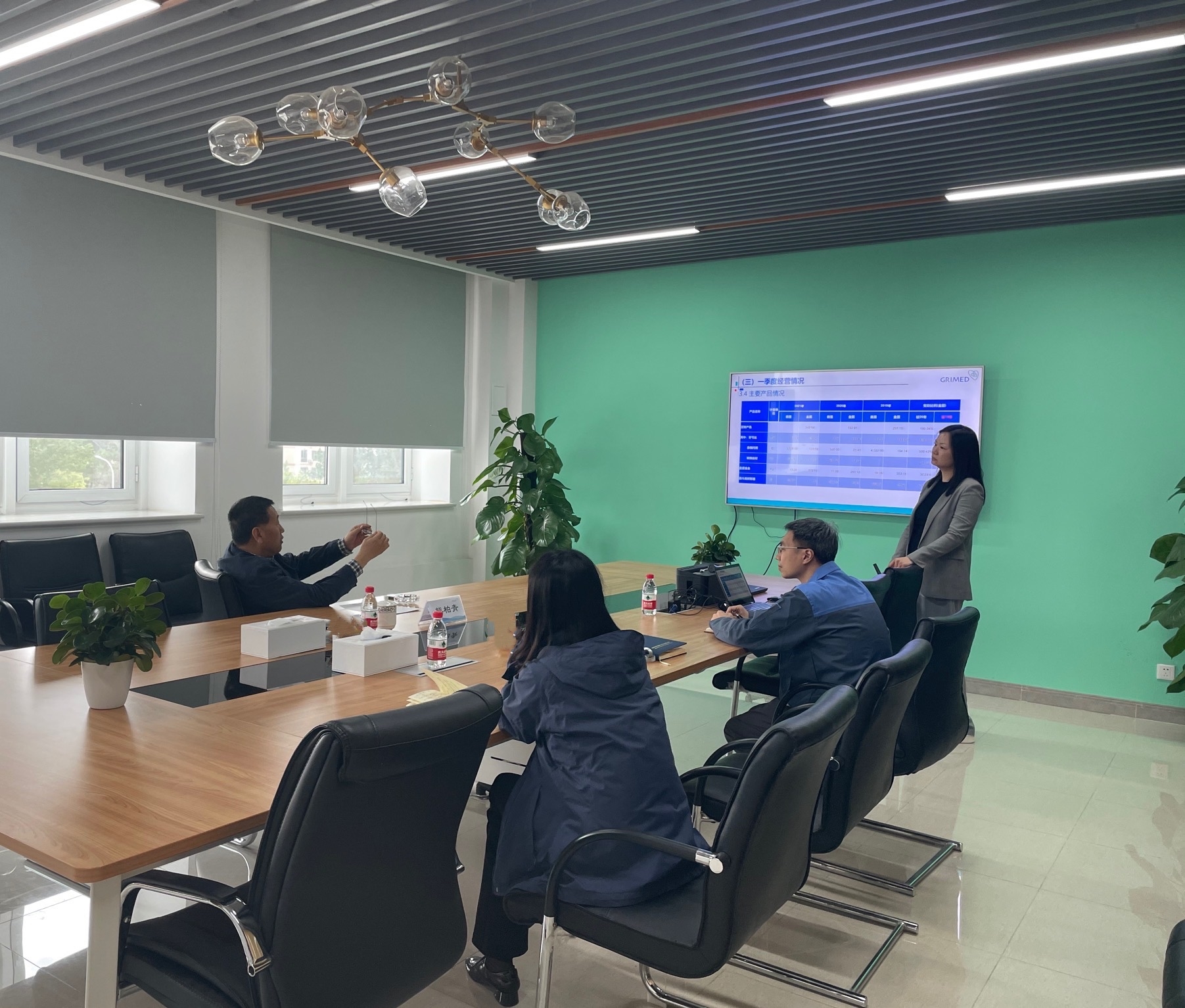 熊柏青参观了有研医疗生产现场。座谈会上,杨阳介绍了公司“十四五”规划中两个必争方向的详细计划与进展,及公司一季度的经营情况,并汇报了对医疗领域热点产品技术发展、市场情况、典型案例的分析情况。