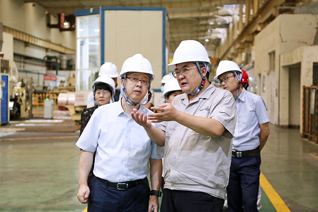 毛昌辉一行参观了中色东方展厅,详细了解了公司历史、产业和科研等情况,现场考察了稀有金属特种材料国家重点实验室、铍铜生产线和钛合金生产线。随后,双方进行座谈,分别就公司基本情况、产业布局、科技创新和深化改革进行介绍,并围绕超高纯钽靶材、钛合金材料、难熔合金、高温合金、电子束熔炼提纯技术与装备等合作内容进行了深入的交流。