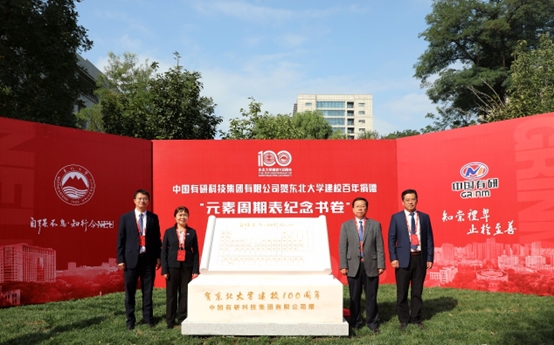 会前,中国有研捐赠元素周期表纪念书卷揭幕仪式在东北大学EPM实验室楼西侧成功举行。中国工程院院士、东北大学副校长唐立新,中国有研首席科学家黄小卫院士出席此次仪式。东北大学副校长王强、中国有研副总经理李志辉作为双方代表进行了致辞。
